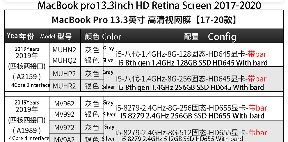 | 2019Years VK2 Gray VM2 Silver i9-32G/1TB card 8G | 1340 |
