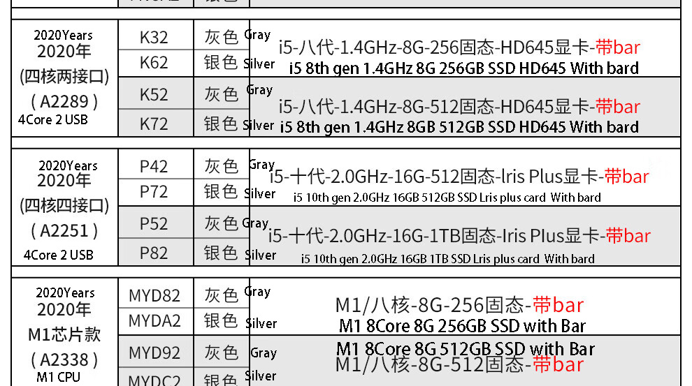 | 2020Years K32 Gray K62 Silver 8th 8G/256G with Bar | 613 |