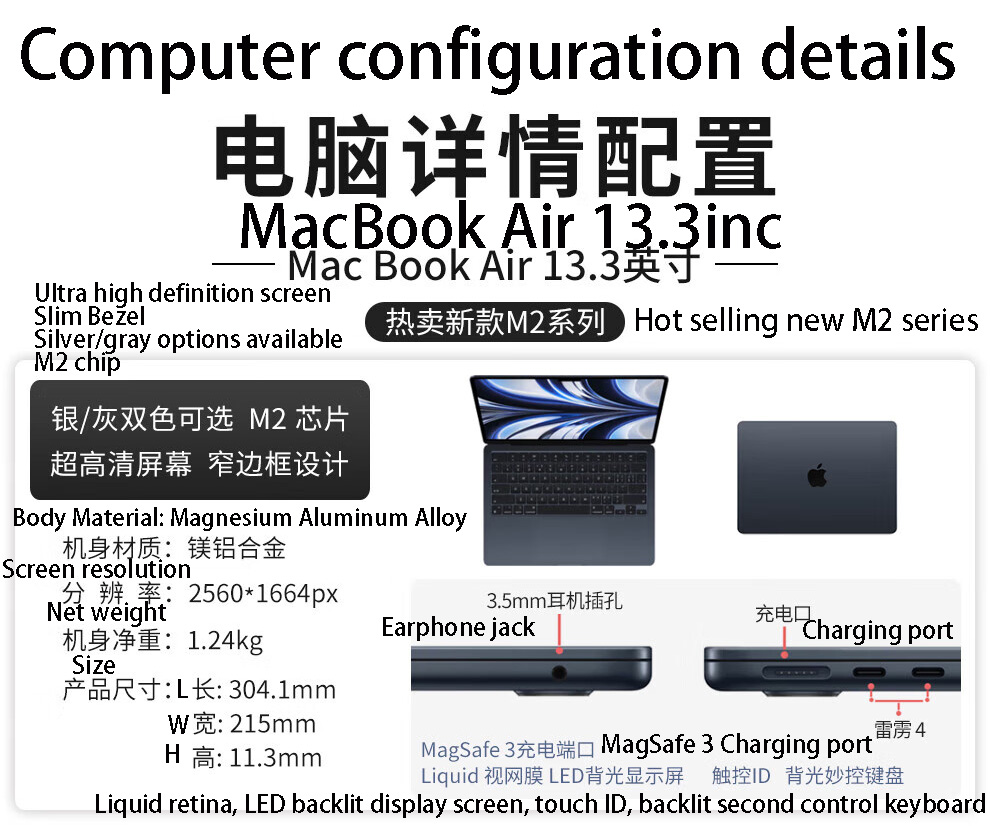 | 2023Years 15inch Air4 colorsM2-8/256 | 99% new Quasi new laptop | 1135 |