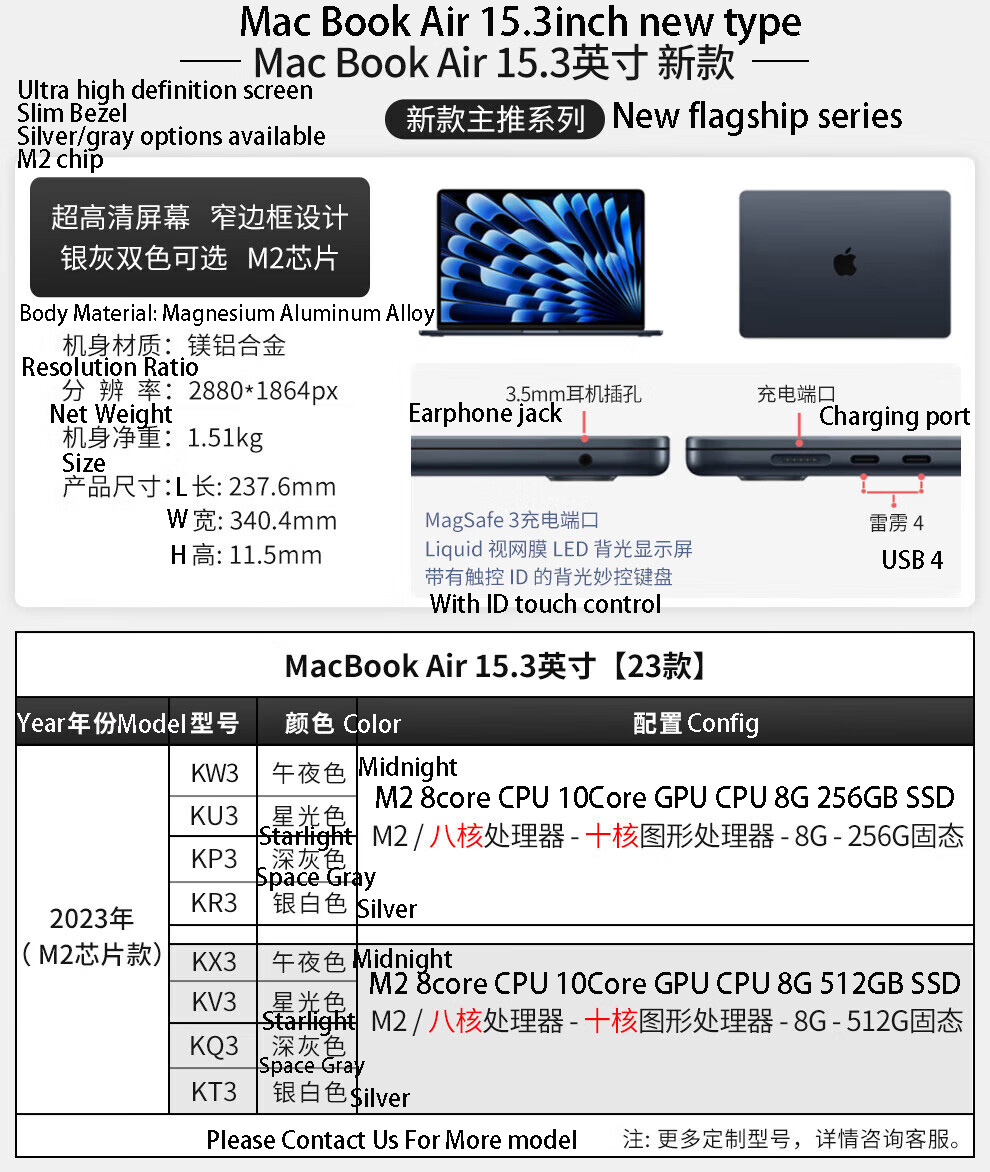 | 2023Years 15inch KW34 colors[M2Sealed with warranty]8G-256G | 1364 |