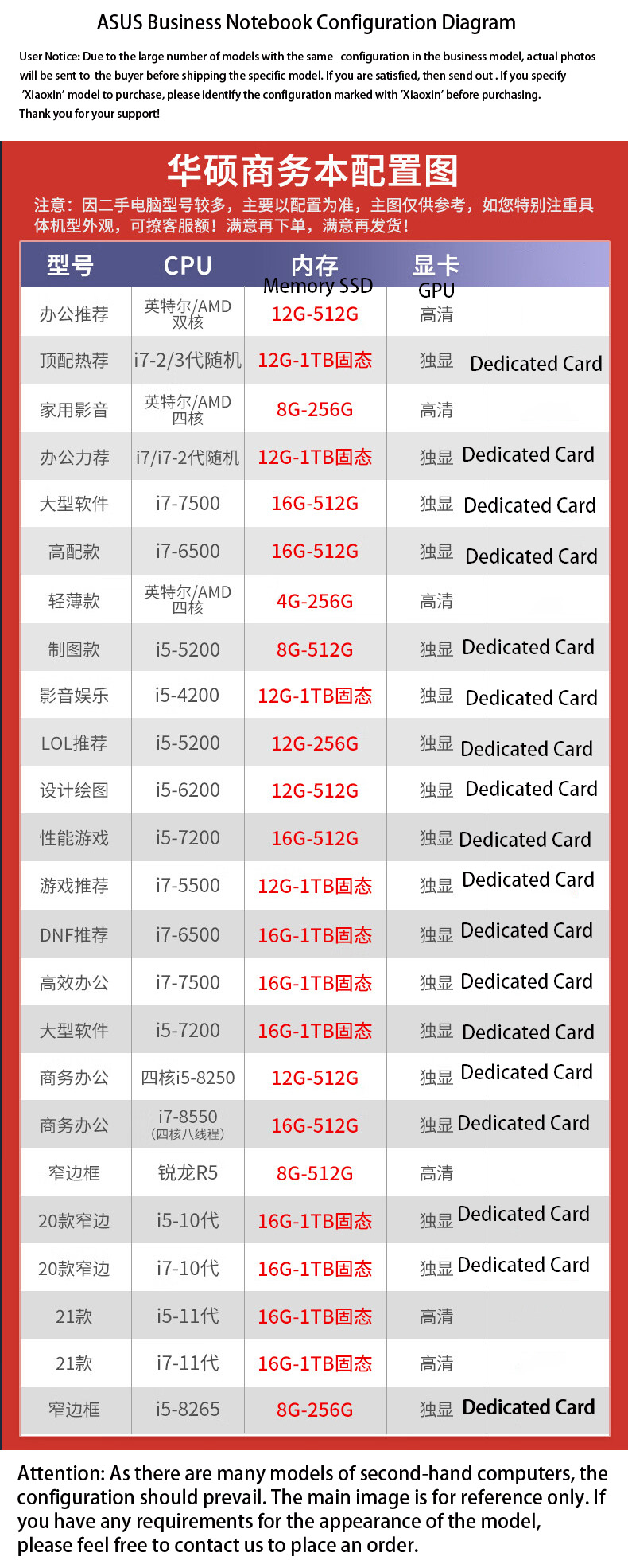 | 95% New i7-8550-16G-512 Dedicated Card | 419 |