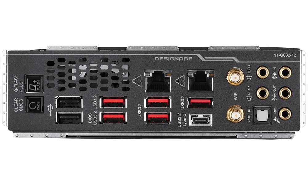 1. 4 x USB 3.2 Gen 2 Type-A ports (red) on the back panel