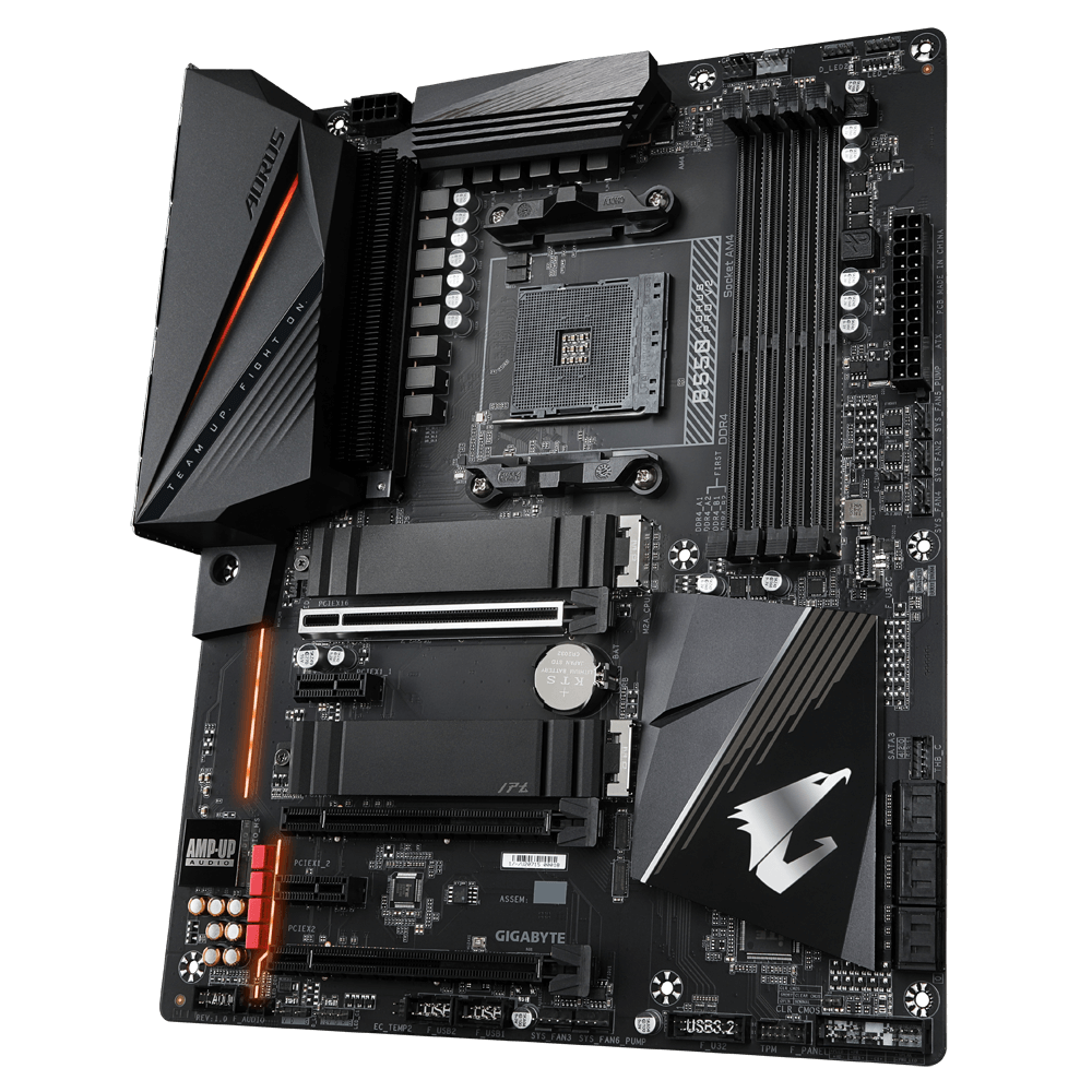 B550 AORUS PRO V2 motherboard uses a 12+2 phases Digital Twin Power Design which includes PWM controller, DrMOS and Ferrite core choke as high quality selected components. These 100% digital controller offer incredible precision in delivering power to the motherboard’s most power-hungry and energy-sensitive components, allowing enthusiasts to get the absolute maximum performance from 3rd Gen AMD Ryzenâ„¢ processors